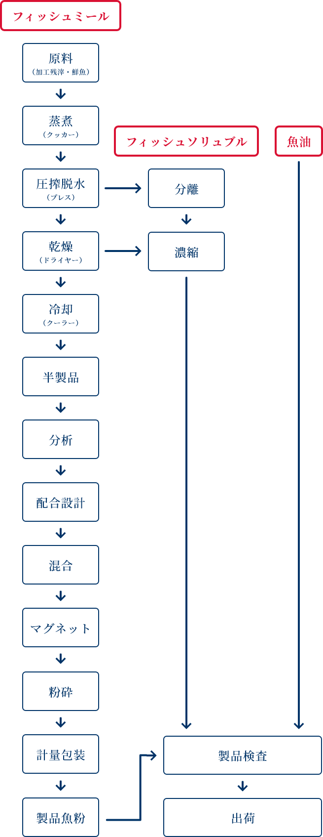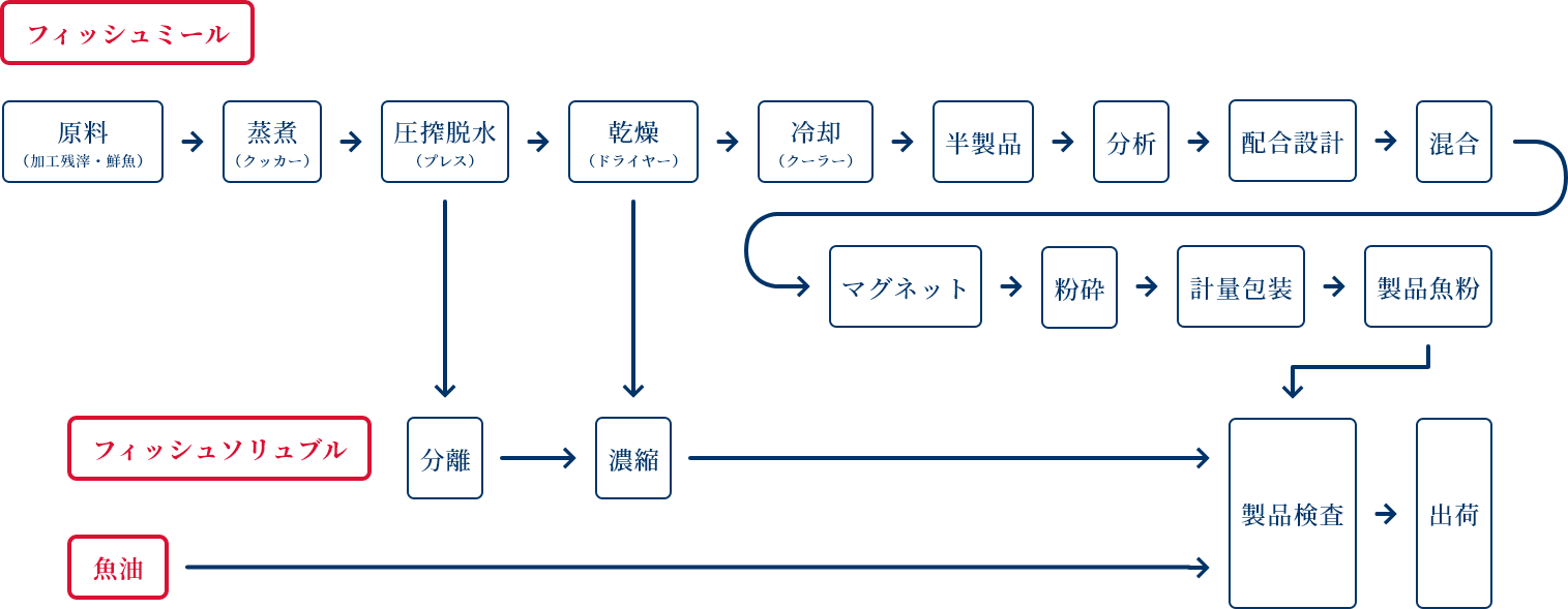 - マルイのフィッシュミールは、地元オホーツク海をはじめとした、北海道各地の漁港で水揚げされた魚のみを使用しております。